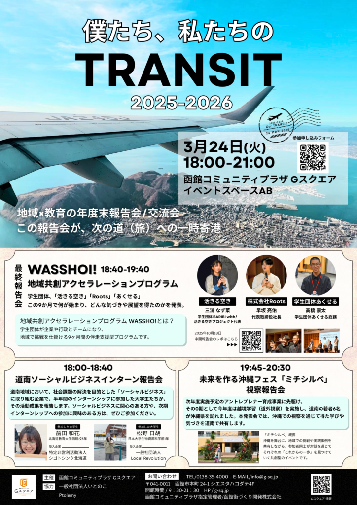 次年度実施予定のアントレプレナー育成事業に先駆け、その0期として今年度は越境学習(道外視察)を実施し、道南の若者6名が沖縄県を訪れました。本発表会では、沖縄での視察を通じて得た学びや気づきを道南で共有します。