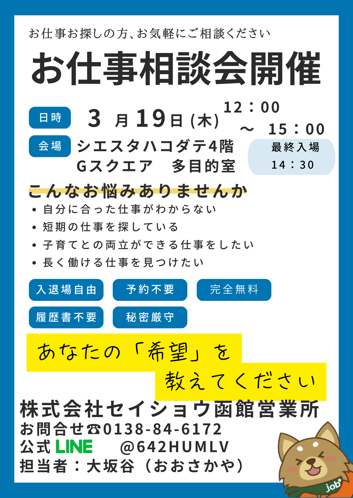 12:00〜15:00(予約不要・履歴書不要)