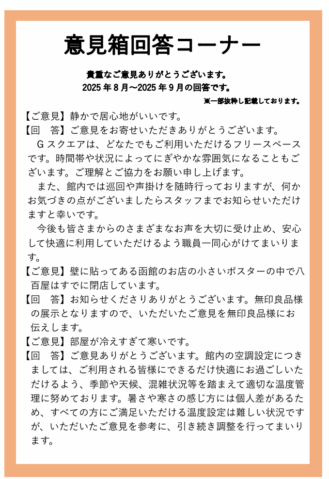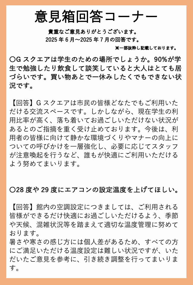 意見箱回答コーナー2025年6月~2025年7月(1枚目)